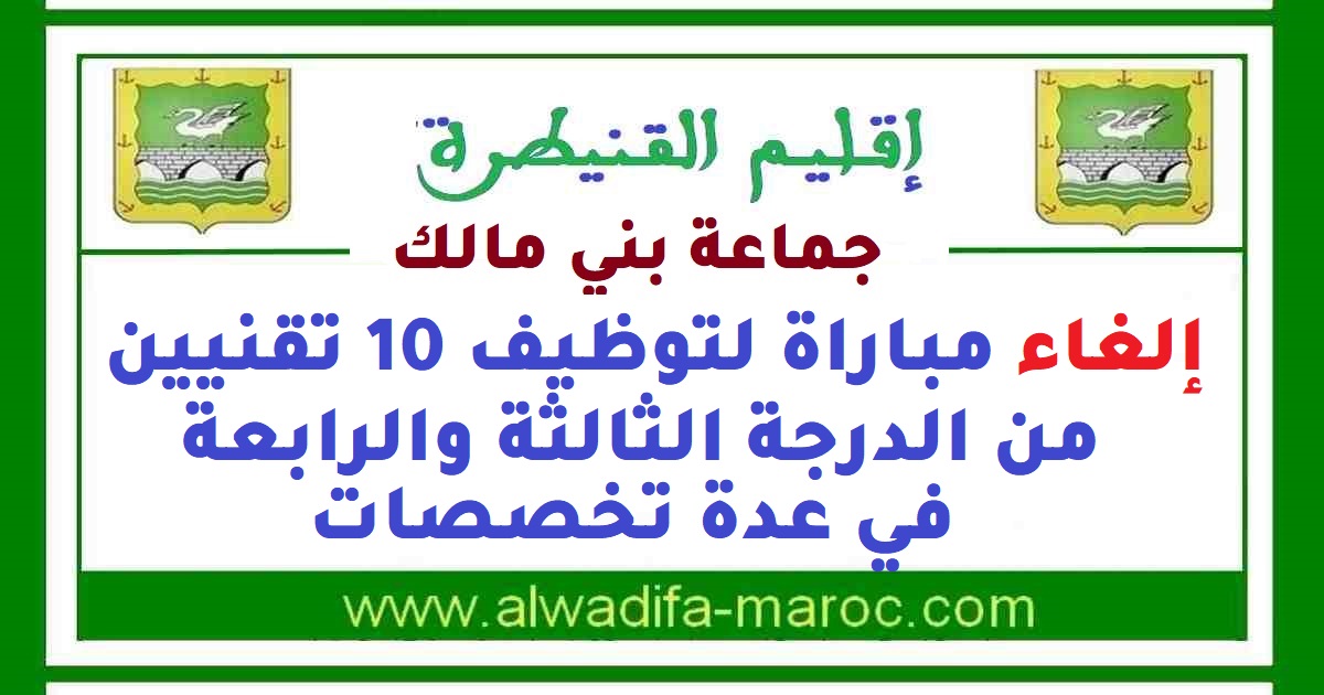 جماعة بني مالك – إقليم القنيطرة: إلغاء مباراة لتوظيف 10 تقنيين من الدرجة الثالثة والرابعة في عدة تخصصات